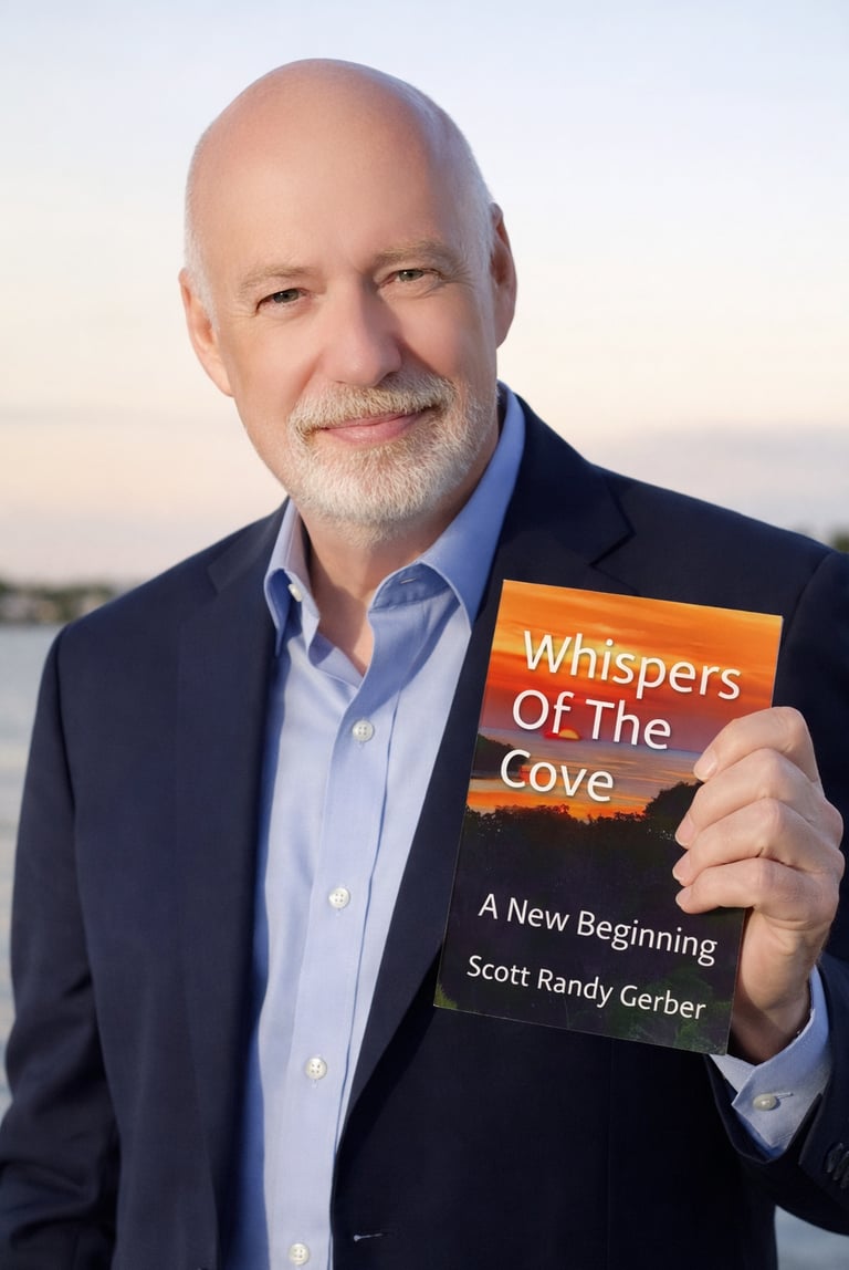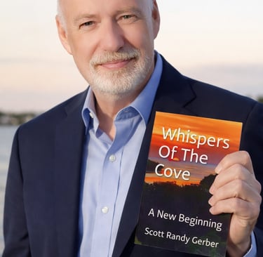 Author Scott Randy Gerber with his book Whispers of the Cove: A New Beginning